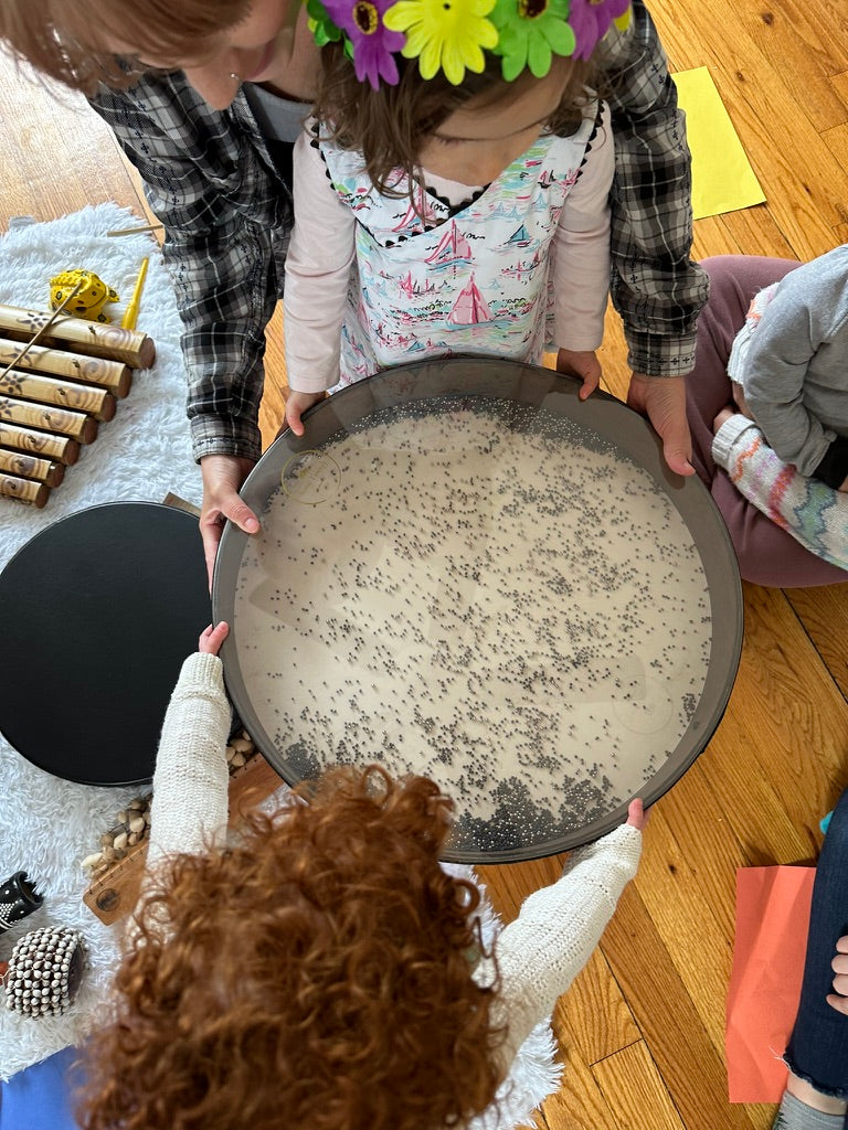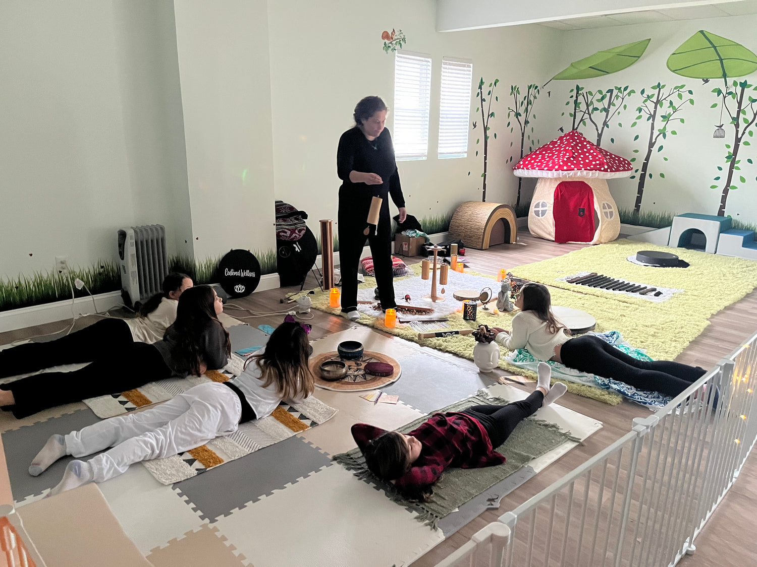Exploring skills like sharing, following directions, and patience with instruments and their sounds. Some of our sound sessions also include art making. Our sessions focus on interpersonal relationships between peers and in families.